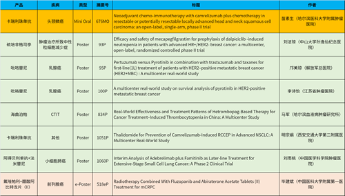 在头颈肿瘤、乳腺癌、肺癌、前列腺癌等多个疾病领域,卡瑞利珠单抗、阿得贝利单抗、吡咯替尼、氟唑帕利、法米替尼、醋酸阿比特龙片(II)等抗肿瘤新药相关研究一共入选了1项简短口头报告、4项壁报展示和1项电子壁报,彰显了开云体育医药强劲的研发实力。